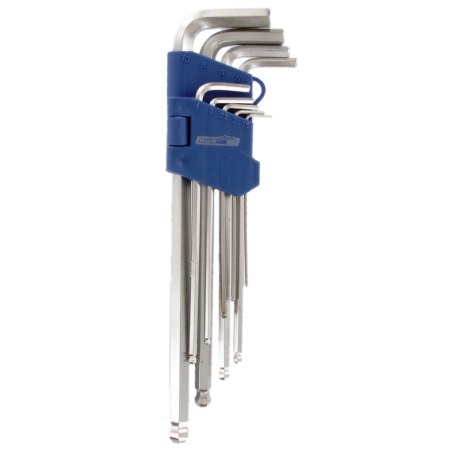 Kogel-binnenzeskantsleutelset 9 delig. Inhoud: 1,5 -2- 2,5 -3 - 4 - 5 - 6 - 8 - 10 mm Prijs per set.